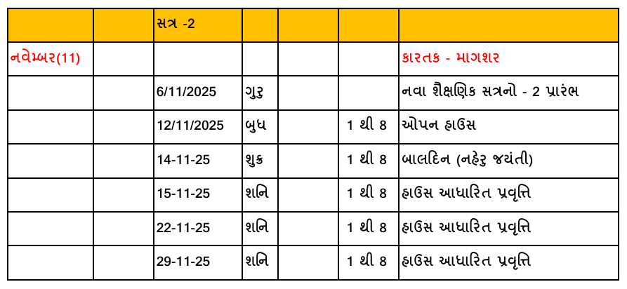 વર્ગ ટાઈમ ટેબલ